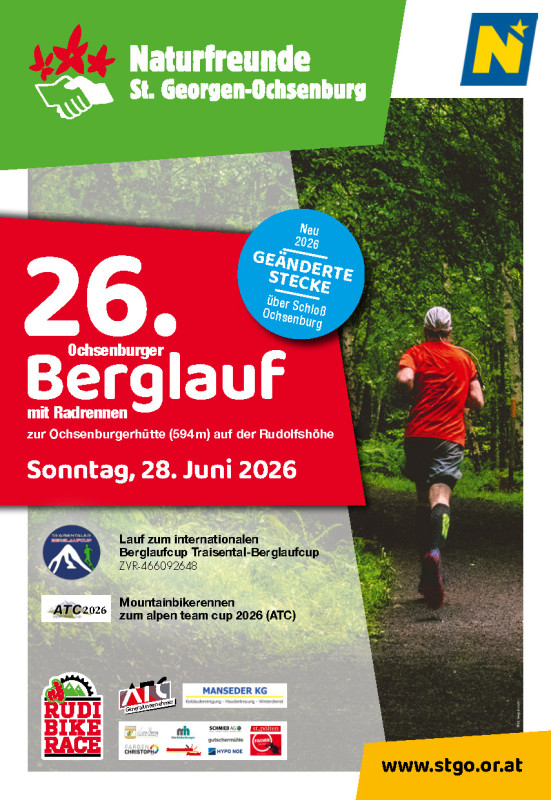 Ziel: Ochsenburgerhütte auf der RudolfshöheDistanz: Lauf und Radrennen: 8,3km, 350m HD; Kinderlauf: 400mVeranstalter: Naturfreunde St. Georgen-Ochsenburg